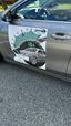 A group of people walking in a parking lot with parked cars nearby.